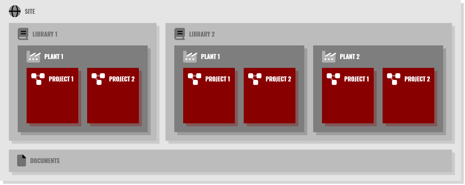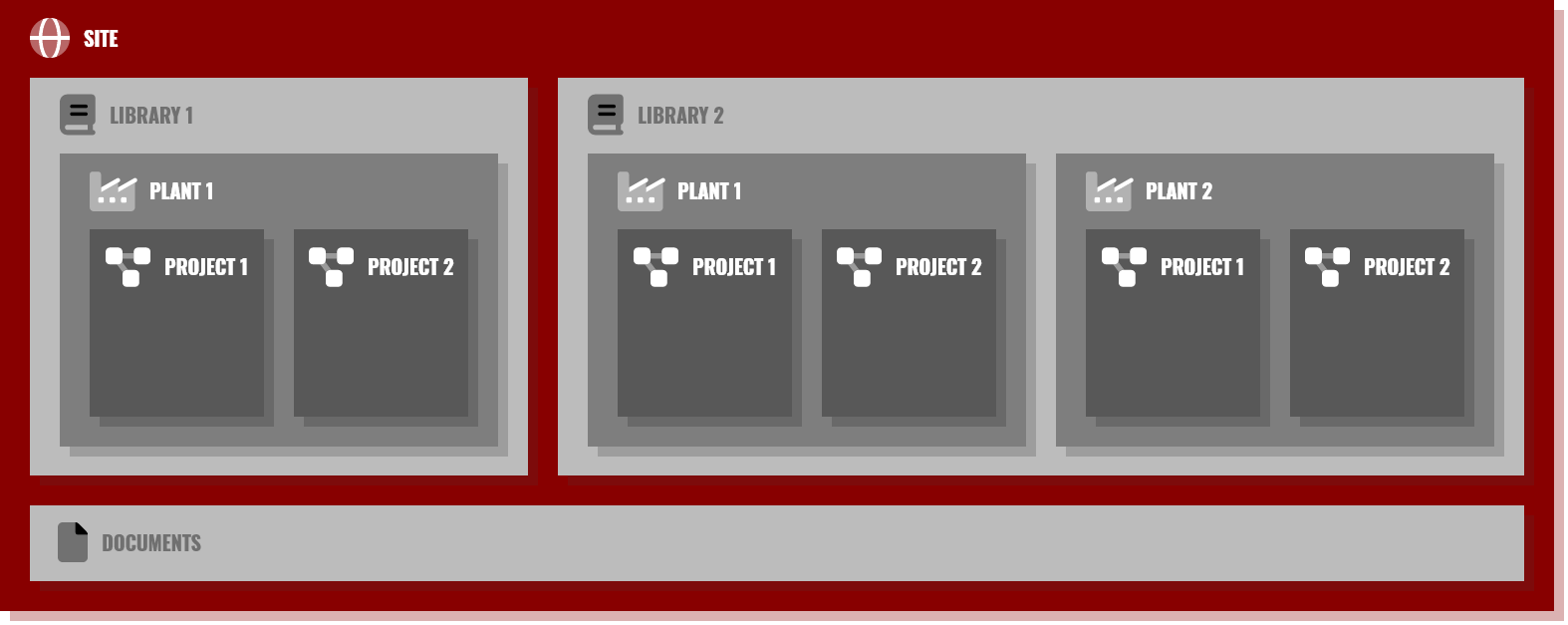 Sites define the geographical or operational boundaries within which plants and projects are managed. Each site can host multiple plants and libraries.